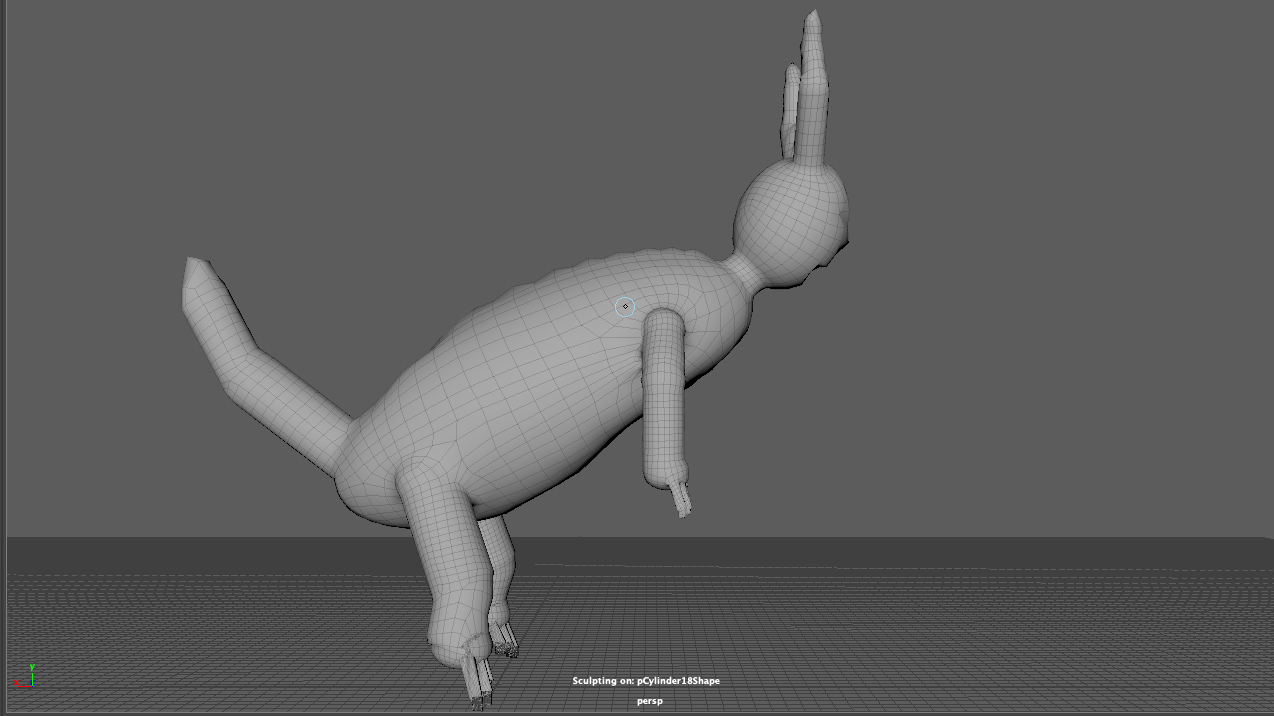 The next process involved blocking in my creature to Maya with primitive shapes, which was quite easy as detail and finer detail weren’t important yet in this stage. I was focusing on getting the creatures main body parts and joints blocked in. Here are some screen shots of the process.