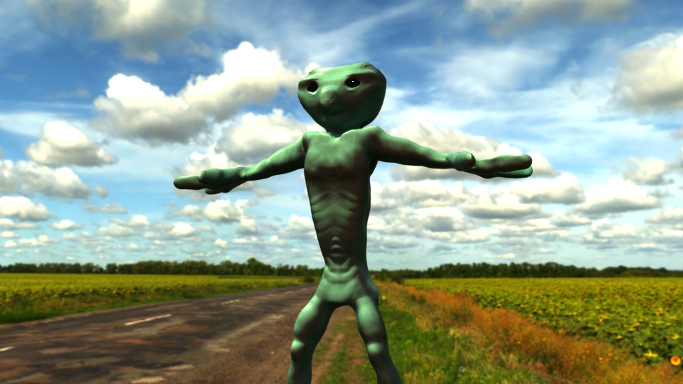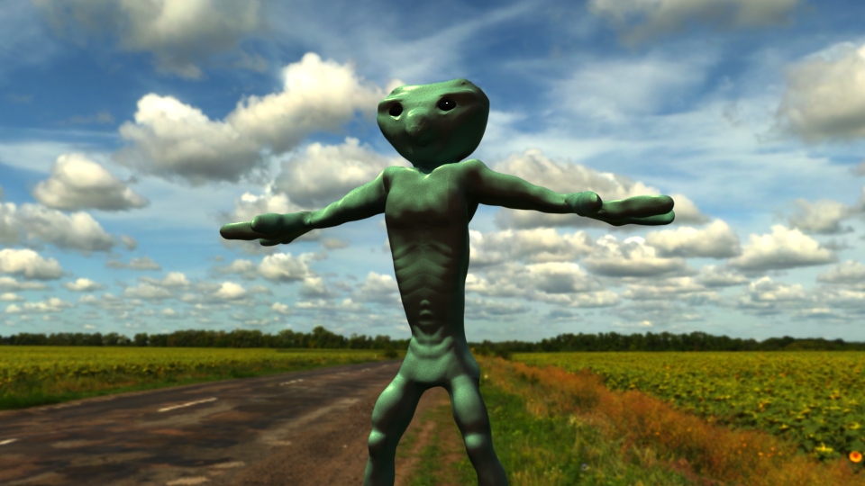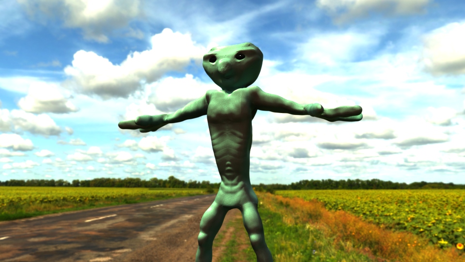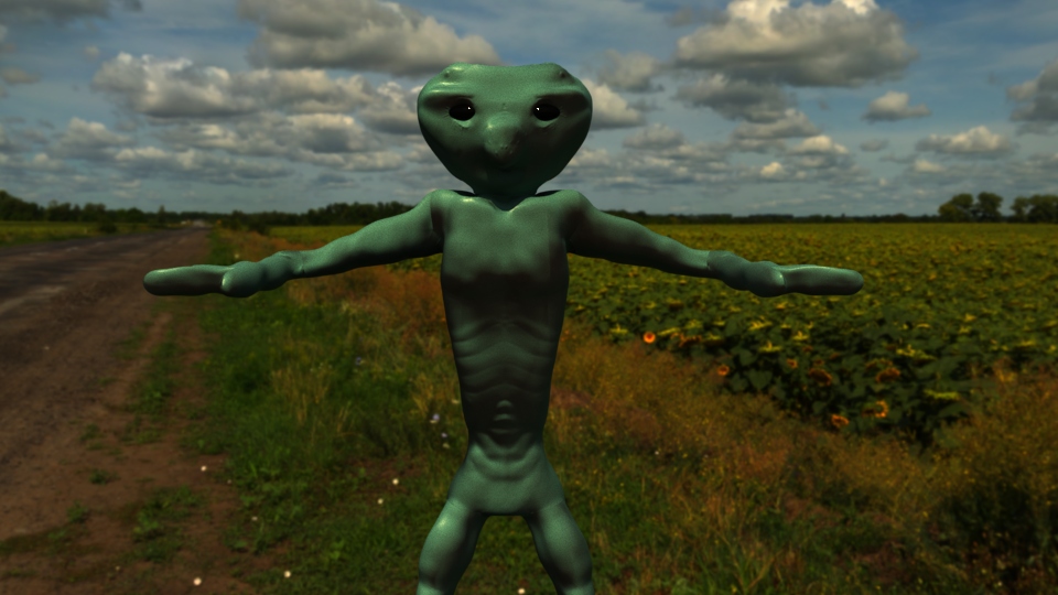 Another complication I ran into was lighting, and that could of been the HDRI File I used, I tried my best in getting the best possibly lighting settings. Overall I am quite happy with my final render, there are many things to keep working on and keep practicing. Therefore I present my ‘Outer Space Bandit’ who crashed his ship on a farm out in the middle of no where!